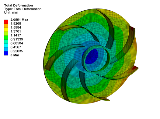 A blower impeller fan is a mechanical device for moving air and gas by using centrifugal method. These fans increase the speed of air stream with the rotating impellers. Objective of the project was to check the flow inside the blower and map the pressure of the fluid onto the structure of the impeller and then evaluate possible causes of the failure.
